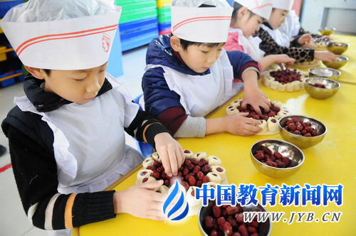 每逢新春佳节,山东有用红枣和面粉蒸花糕的习俗,以此寓意着生活年年高、步步高。聊城市江北水城幼儿园在“做花糕”中教孩子“学民俗”,瞧,孩子们做得多带劲儿!张振祥 李娟 摄 “水”的主题可以做多少文章 生活化课程要注意整体性 《幼儿园教育指导纲要(试行)》(以下简称《纲要》)指出:“幼儿的学习是综合的,整体的。在教育过程中应依据幼儿已有经验和学习的兴趣与特点,灵活、综合地组织和安排各方面的教育内容,使幼儿获得相对完整的经验。” 生活教育是综合性活动,我们无法将其确切分类。生活教育对幼儿有着重要的意义,幼儿在生活中通过自身实践,经验得以传递、整合、凝聚,这些从不同现象、事物中获得的经验存在着一定的联系,进而形成完整的经验、完整的世界和完整的人格。 陈鹤琴先生提倡的“整个教学法”,就是把儿童应该学的东西整个地、系统地教给儿童,这也是与新课改后国家所倡导的幼儿园课程整合化相辅相成的。因此,生活化的幼儿园课程是整体性的课程,而不是独立的课程。 儿童的发展是一个整体过程,所以教育者要注重领域之间、目标之间的相互渗透和整合,促进幼儿身心全面协调发展,不应片面追求某一方面或几方面的发展。 在日常的教与学中,我们围绕主题课程网络、一日生活作息、节日娱乐等细节,层层铺展活动。如以“水”为主题的生活课程网络,包括“水”的来源、水的用途和危害、参加消防演习、参观农场、了解水灾知识等活动,都与幼儿的生活紧密联系。 在整个主题活动中,围绕“水”的自然知识,融合了多个领域的学习内容,引导幼儿有效迁移多种经验,从对水的了解衍生出若干活动,提升有关经验。再如,节日娱乐活动在人们的社会生活中不可或缺,具有对人类情绪生活的普遍渲染作用。 抓住节日契机,可以很好地达成对幼儿的教育效果。像端午节、中秋节、重阳节等传统民俗节日,我们引导幼儿了解感受民族文化;三八妇女节、五一国际劳动节等社会性节日,引导幼儿了解社会生活;植树节、无烟日等现代文化性节日,引导幼儿了解人们的生活习惯、生活质量和环境变化的重要关系。 在这些活动中,我们将各种知识点融入其中,不笼统地将某一项归类为语言、社科或是艺术领域,而是统一划为幼儿对世界的整体性认识与学习。 不预先设计死课程也不盲目随意 捕捉孩子的兴趣点共建课程 《纲要》指出:“幼儿园教育应尊重幼儿身心发展的规律和学习特点,充分关注幼儿的经验,引导幼儿在生活和活动中生动、活泼、主动地学习。”也就是说,幼儿的兴趣是课程实施的核心。 生活化的课程本身应使幼儿产生自发的兴趣,而不是教师努力去调动幼儿的兴趣,更不能无视幼儿是否有兴趣。 良好的课程资源能够使幼儿自发地探究和感受。课程的趣味性,除了能够激发幼儿的感知欲望,吸引他们积极参与,还具备一定的挑战性,能够引发幼儿持续的关注。 在瑞吉欧的教育观念中,生成性课程吻合了教育对儿童全面发展的要求,成为影响未来课程发展的根本特点与主流方向。 生成性教育是指在师生互动过程中,通过教育者对幼儿的需要和幼儿感兴趣的事物的及时价值判断,不断调整教学活动,以促进幼儿更加有效地学习课程的教育形态。它既不是教育者预先设计好的、在教育过程中不可改变的僵死计划的执行,也不是儿童无目的、随意、自发的活动,而是一个动态的师生共同学习、共同建构的过程。 幼儿园课程应该体现这种理念,让我们善于观察并捕捉幼儿在集体活动中的兴趣点,使幼儿拥有真正属于自己的课程。 建立生成性课程,幼儿以体验的方式参与其中,学习更主动、更有效,有利于发挥和发展幼儿的主体性,培养创新人才。这似乎也给教师提出了更高的要求,即教师要以幼儿为本,拥有一双善于发现的慧眼和一颗应对万变的慧心,与幼儿共同学习。 3—6岁幼儿由于年龄特点,对任何事物都想看一看,摸一摸,学一学。集体活动中由于受活动形式、时间、内容、教具等多方面因素制约,幼儿的好奇心得不到充分满足。为了更好地延伸教育活动,满足不同层次幼儿生理和心理发展的需求,我们在活动室内设立娃娃家、小超市、建构区、科学区、表演区、自然角等各种区角,投放丰富的操作材料并及时更新。 在区角活动中,幼儿学习的积极性、主动性和创造性表现得十分充分,满足了幼儿各方面能力发展的需要,对培养幼儿平等意识、创造精神、交往合作能力及自律习惯等有积极的作用,而这些正是幼儿教育主体性的表现。 让幼儿亲自看一看、摸一摸、想一想 生活化课程需回归生活实景 《纲要》指出:“教师要让幼儿运用感官、亲自动手、动脑去发现问题、解决问题。鼓励幼儿之间的合作,并积极参与幼儿的探索活动。” 幼儿是生活的探究者。幼儿的思维是在活动过程中完成的,那么,幼儿的一日活动就是在不断地探究中学习。 教师要让幼儿多参加一些活动,为他们提供思维、想象的机会和环境。 生活化的课程积极支持和维护幼儿的探究,注重为幼儿提供有利于探究的生活场景,让幼儿真实面对现实的情境和问题。儿童通过与环境的作用、与他人的对话和大脑的思考反应,最终找到真实的世界、完整的生活与探求的满足感。 在生活实景中,我们注重引导幼儿探索并积累生活经验,创新解决生活中的问题,