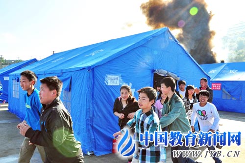 5月10日,芦山县芦阳初级中学帐篷学校师生在参加消防演练。姚云辉 李佳 摄 今年5月12日是汶川特大地震5周年纪念日,也是国家“防灾减灾日”。5月10日,四川省各高校、中小学校分别组织了应急疏散演练。正在成都异地复课的芦山地震高三学生也通过参加演练和心理辅导等活动,放松心情,笑迎高考。 “请迅速撤离到安全地带,注意安全。”5月10日上午10点15分,急促的警报声响起,正在成都师范学院复课的天全中学师生开始了应急逃生演练,两分钟内,1016名师生按既定路线撤离到图书馆前安全区域,疏散井然有序。 成都师院院长刘存绪介绍,为加强学生们对自然灾害和突发事件的自救能力,进一步增强防震意识,学校专门组织了此次演练。同时,为帮助复课备考的天全中学学生抚平心理创伤,缓解备考压力,学校还成立了专门的心理辅导小组,适时对学生进行心理辅导。 这样的心理辅导同样在芦山中学高三学生中开展。西南财经大学邀请了著名心理专家格桑泽仁教授,给学生们开展了一场别开生面的震后心理调适和高考减压团体辅导。“格桑老师的心理辅导课很有意思,也很有效果。眼看就要高考了,我反而觉得没那么大压力了。”芦山中学高三(7)班学生叶晓艳说,来成都复课两周多,她基本适应了新环境,正在安心复习备考。 芦山中学高三(4)班学生骆虹宇告诉记者,刚到成都复课时,她舍不得家人,天天给家里打电话,随着对新环境的适应,最近学习也安心了。(本报记者 刘磊 通讯员 倪秀) 《中国教育报》2013年5月11日第1版 |