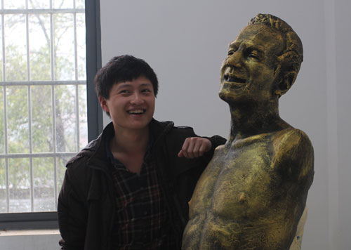 赖庆林与他的毕业作品——《尼克·胡哲》。 本报记者 阳锡叶 摄 5年大学,有3年多是在黑暗中度过的。 但他成绩优异,笑容灿烂,出色地完成了所有的学业,完成了几十件大大小小的雕塑作品,还作曲填词玩乐队,学日语、韩语,大学生活丰富多彩,开心快乐。 他就是赖庆林,湖南科技大学2008级雕塑专业学生。大二时,他不幸患上“视网膜色素变性”这样一个被人们称为“眼癌”的恶疾,视力几近为零,治愈希望也几近为零。 得知这个恶讯的时候,赖庆林觉得“天都塌了,心一下子掉在了地上”。 他从小就酷爱美术,梦想成为最有名的雕塑家。“他的专业能力特别强。”赖庆林的老师、该校雕塑系主任郑先觉说,小赖对雕塑特别有感觉,很有艺术天赋。 再有天赋和梦想,眼睛看不见了,一切岂不白搭? 小赖幻想着出现奇迹,2010年暑假,他和父亲来到北京,可手术后效果不太明显。此后,他又四处求医问药,曾经一周吃中药就花了1万多元。“累计花了20多万元,家里再也承担不起了。”小赖说,自己家在福建长汀偏远的山村,这个天文数字让父母多次落泪,劝他说:“病治不好,你大学也别念了,回家吧。” 赖庆林坚决不干。他说,只有在学校,在同学和老师中,在雕塑作品时,他才能忘记自己的伤残,他一定要念完大学。“即使失明,我依然要奔向梦想。” 此后几年,赖庆林的视力不断恶化,视野不到正常人的百分之三,二级盲人。记者采访时,进门就看到一个杯子掉在地上,而他却找了一个早上。 母亲要来学校陪读,他坚决不同意。“有手有脚,我能行。”他说。 从此,在湖南科技大学的校园里,人们常常看到这样一个奇特的景象:一个满脸阳光的帅小伙,睁着明亮而有神的大眼睛,挽着同学的手臂,行走在去教室、宿舍和雕塑教室的路上;而在教室里,他睁着基本上无光感的大眼睛,支着耳朵认真听课;而在雕塑教室里,他只能靠手感完成作品。整整3年,他以手代眼,顺利完成大学学业,作品在同学中最多,大学5年,他27门课程在80分以上,还有9门课程为优秀。 “一个搞艺术的,眼睛看不见,意味着什么?”曾经,老师和同学们很担心,都怕赖庆林一蹶不振,对生活失去信心。 但大家看到的依然是那个对艺术充满热爱、生活十分阳光的赖庆林。他的好朋友、班长魏豪杰告诉记者,赖庆林喜欢雕塑,喜欢看书,还喜欢音乐,能够自己谱曲作词,还和同学一起创建了一个乐队,“好多女粉丝呢”。 “黑夜的星星在闪亮,可是我却看不清它的面庞……”熟练的指法、深邃的眼神,赖庆林坐在床上,现场给我们弹起了吉他,嗓音很好,感觉到位。 在他床对面的墙上,一幅由大学期间他在全国各地采风的照片组合而成的巨幅长城独具匠心。郑先觉说,这幅“长城”非常有创意,不同的照片要组合成长城,要讲究明暗层次,心思灵巧,难得。 “手就像我的眼睛,哪里凸出来,哪里凹进去,哪里需要改进,都需要用手感觉,现在差不多已经习惯了这种创作方式。”赖庆林说,幸亏是学雕塑,要是绘画,就麻烦了。雕塑可以让手跟着感觉走,用心去感知陶土的触感,手可以代替眼睛的功能。这几年,他尝试着慢慢减弱对眼睛的依赖,用触摸延续艺术的生命。一直关心他的学院党总支副书记袁新洁说,由于雕塑艺术的特性,雕塑也可以不用眼睛。国外也有成功的先例,意大利著名雕塑家费利切·塔利亚费里就是一位盲人。因此,只要赖庆林坚持不懈,仍然能延续他的艺术生命。 现在,赖庆林创作的大部分作品都是抽象的。在他手里,两个人物泥像紧紧地依偎在一起,没有四肢,也没有五官,但透露出一种难言的亲密。他用手轻轻触摸着泥像,小心得像是抚摸孩子的肌肤。 在雕塑教室里,我们看到赖庆林的毕业作品——没有四肢的励志演说家雕塑《尼克·胡哲》,他“摸索”了3个月完成的大型雕塑。 知道自己患的是“眼癌”后,赖庆林从网上找来尼克·胡哲的图片和视频,用仅有的微弱视力,一遍又一遍地“听”看,尼克·胡哲成了他的精神偶像。整整3个月,从做造型骨架,到测量,再到上大泥巴,最后到雕塑细节,不厌其烦地修改造型轮廓,尽最大的努力将他所捕捉到的尼克·胡哲的神采赋予到作品里去。他说,有时候无助像一堵墙一样横在他面前,让他沮丧而伤心,但尼克·胡哲有一句话对他影响很大:“如果不停地纠结于你所没有的或者不想要的,你就会忘记你真正拥有的。”他笑着说:“尼克·胡哲这样一个残疾人都充满着对生活的追求,用亲身经历去鼓励人。我也要向人们传递正能量。” 记者细细打量这座高1.7米的作品,《尼克·胡哲》微笑,头稍上扬,呈现出一种动态与乐观向上的力量,与站在旁边的赖庆林神似。(记者 李伦娥 阳锡叶) 《中国教育报》2013年4月11日第6版 |