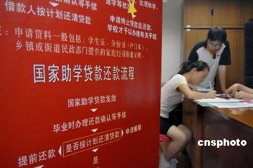 2008年8月20日,上海籍赴外地高校学习、经济困难的学生在了解国家助学贷款项目流程进行申请办理。 中新社发 海牛 摄 从1999年至2008年年底,全国高校累计有436.1万名大学生通过国家助学贷款政策圆了大学梦,累计贷款金额达337.1亿元。 >>>详细 国家助学贷款,照亮殷殷求学路 数据显示,全国11%的高校学生,15%的中央部属院校学生是在国家助学贷款的资助下走进大学校门的,助学贷款已经成为我国贫困生接受高等教育费用的主要来源。 >>>详 大学生学费国家助学贷款代偿暂行办法发布 为引导和鼓励高校毕业生面向中西部地区和艰苦边远地区基层单位就业,根据《中共中央关于推进农村改革发展若干重大问题的决定》(中发〔2008〕16号)和《国务院办公厅关于加强普通高等学校毕业生就业工作的通知》(国办发〔2009〕3号)有关精神,财政部、教育部决定自2009年起,对中央部门所属全日制普通高等学校应届毕业生,自愿到中西部地区和艰苦边远地区县以下基层单位工作、服务期达到3年以上(含3年)的学生,实施相应的学费和助学贷款代偿。各地要按照《国务院办公厅关于加强普通高等学校毕业生就业工作的通知》(国办发〔2009〕3号)要求,结合当地实际,抓紧研究制定本地所属高等学校毕业生学费和国家助学贷款代偿办法并认真组织实施。 >>>详细 财政部、教育部、总参谋部 财教〔2009〕35号 为鼓励高等学校毕业生积极应征入伍服役,提高兵员征集质量,推进国防和军队现代化建设,根据《国务院办公厅关于加强普通高等学校毕业生就业工作的通知》(国办发〔2009〕3号)和《总参谋部总政治部教育部财政部关于做好普通高等学校应届毕业生征集工作的通知》(参动〔2009〕6号)有关精神,财政部、教育部、总参谋部决定自2009年起,对应征入伍服义务兵役的全日制普通高等学校应届毕业生,实施相应的学费补偿和国家助学贷款代偿。 >>>详细