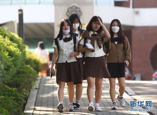 6月3日,几名韩国平泽女子高中的学生走在放学的路上。平泽女子高中目前还没有停课。据韩国保健福祉部3日通报,韩国中东呼吸综合征确诊患者已增至30名(包括1名在中国确诊病例),其中两名患者死亡,疑似患者增加至398名。韩国卫生部门加大对疫情的控制力度,截至3日,韩国中东呼吸综合征(MERS)隔离对象已激增至1364人。此外,据韩国媒体报道,截止韩国当地时间3日下午5时,韩国全国共有544所学校已停课或正准备停课,其中位于首都圈的京畿道地区共有439所学校。新华社记者姚琪琳摄 |