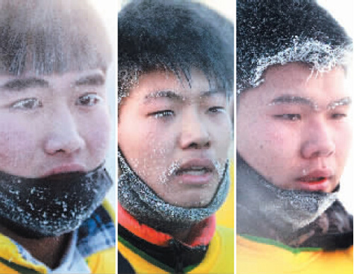 漠河县高级中学学生在苦练基本功。 “雪地足球”助北国少年实现梦想。