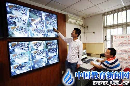 6月3日,高考考务人员正在调试监控及播音设备。当日,北京市第24中学的考务人员在进行播音试播、远程监考设备调试、布置考务办公室等准备工作,以优质服务迎接高考到来。(周良 摄) 《中国教育报》2015年6月5日第3版 |