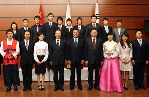 中日韩领导人与三国青少年代表见